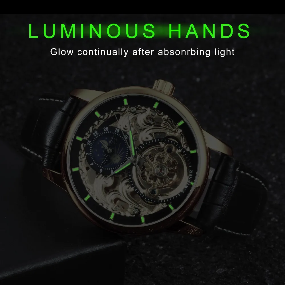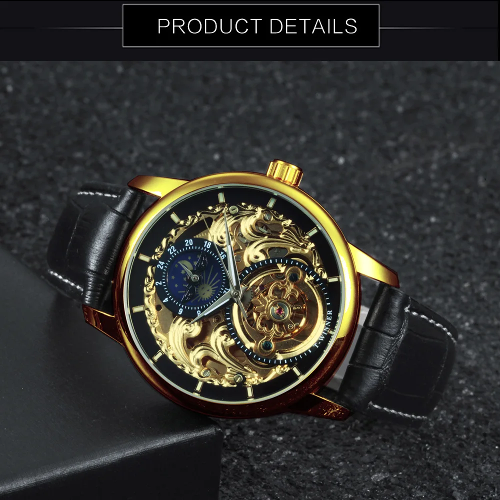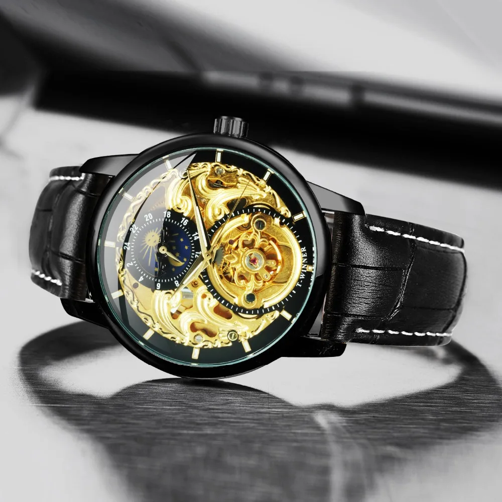 Casual Moon Phase Carved Hollow Automatic Mechanical Watch