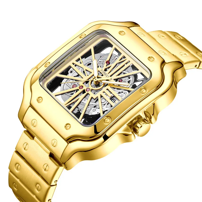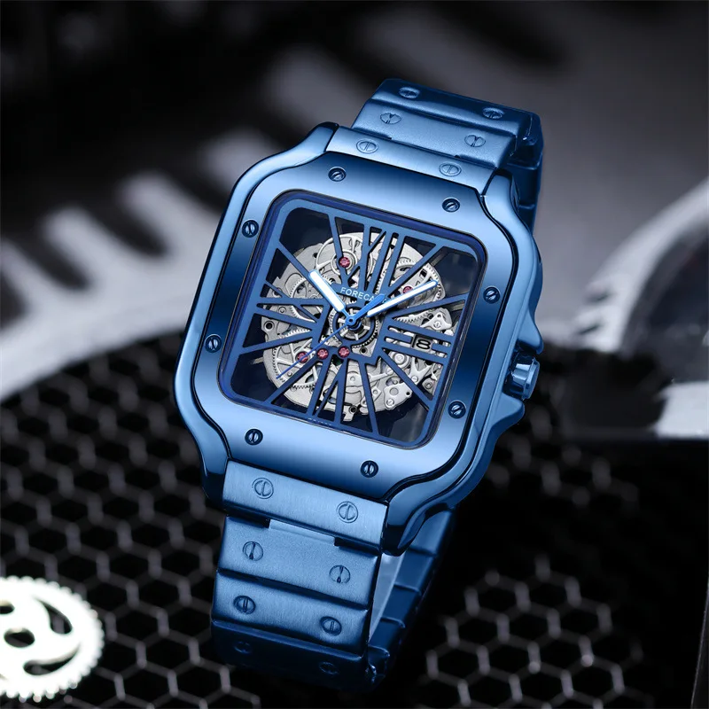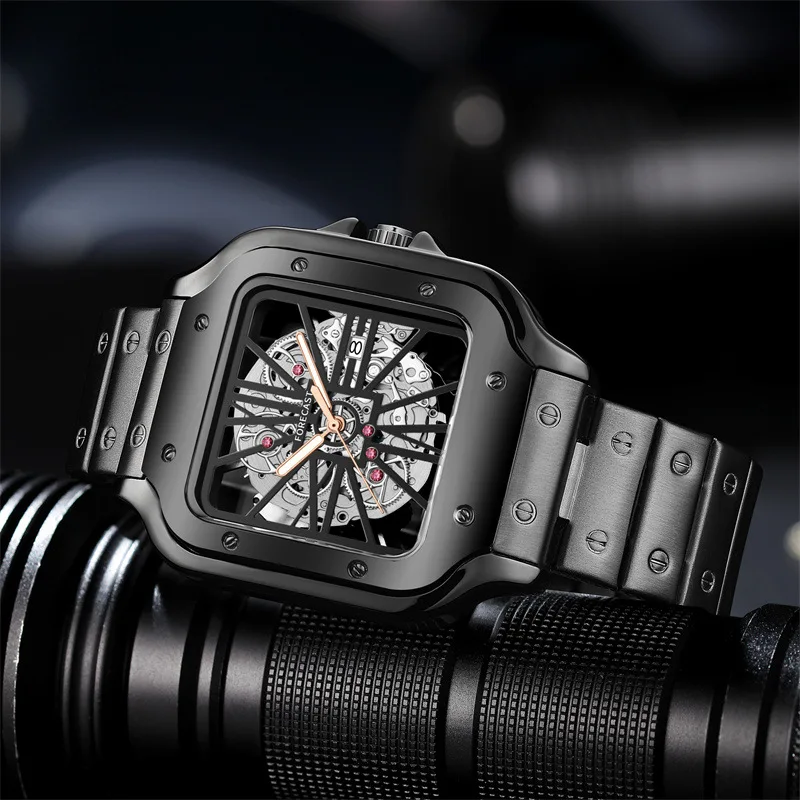 Men's Stainless Steel Designer Watch Wholesale Square Hollow Sandos Roman Series Day Alloy Case Water Resistant